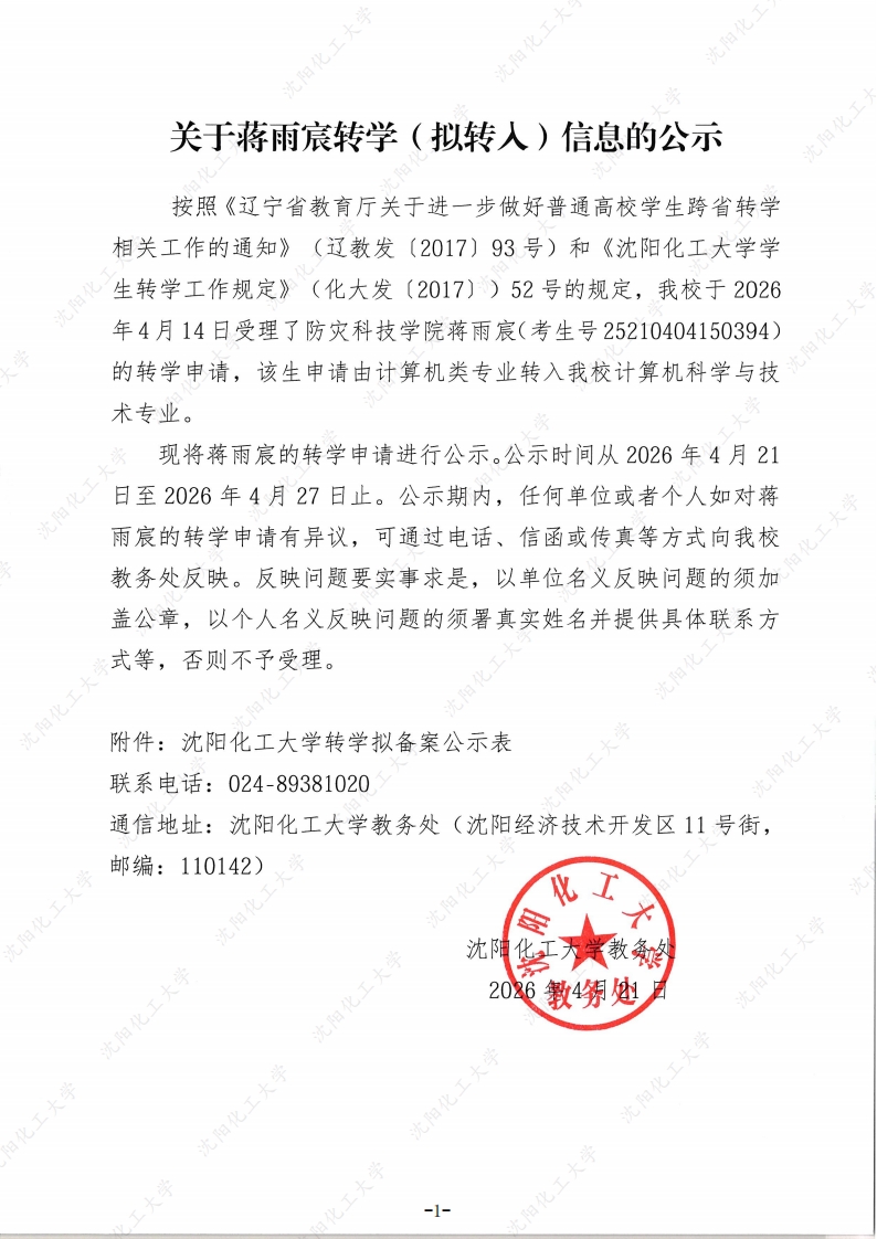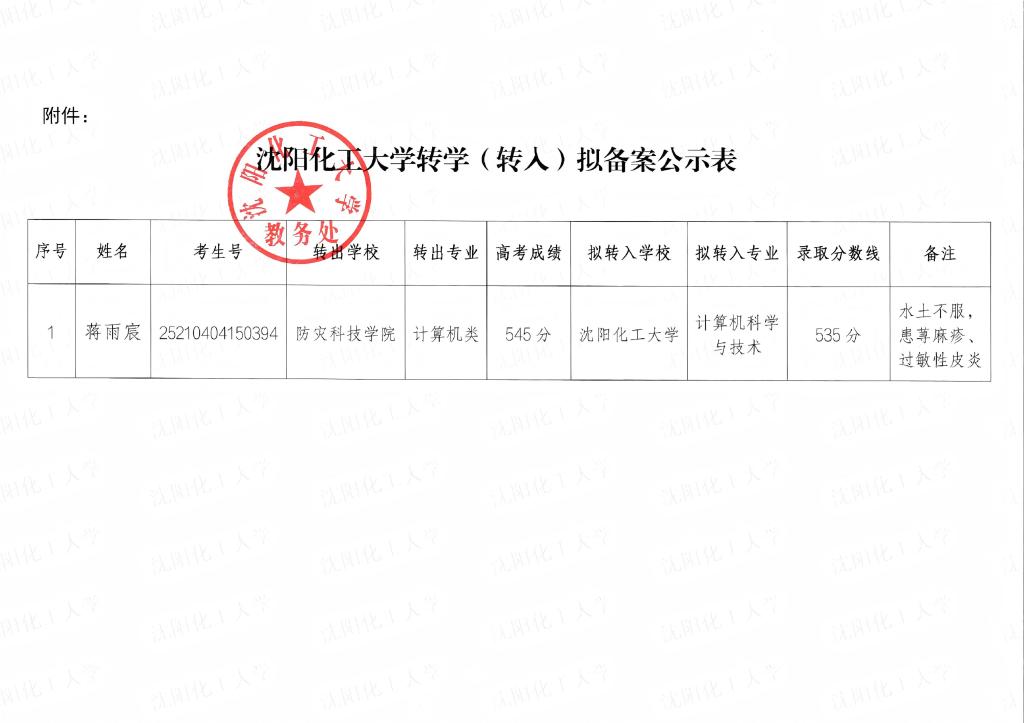关于蒋雨宸转学(拟转入)信息的公示